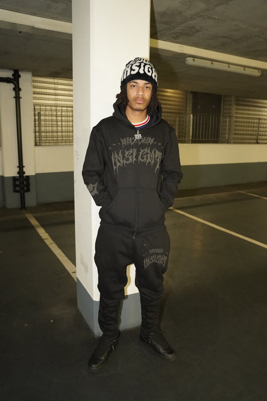 BLACK SIGNATURE ZIPPER TRACKSUIT + BEANIE SET